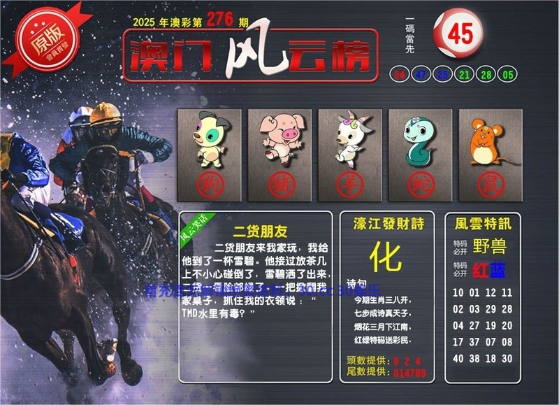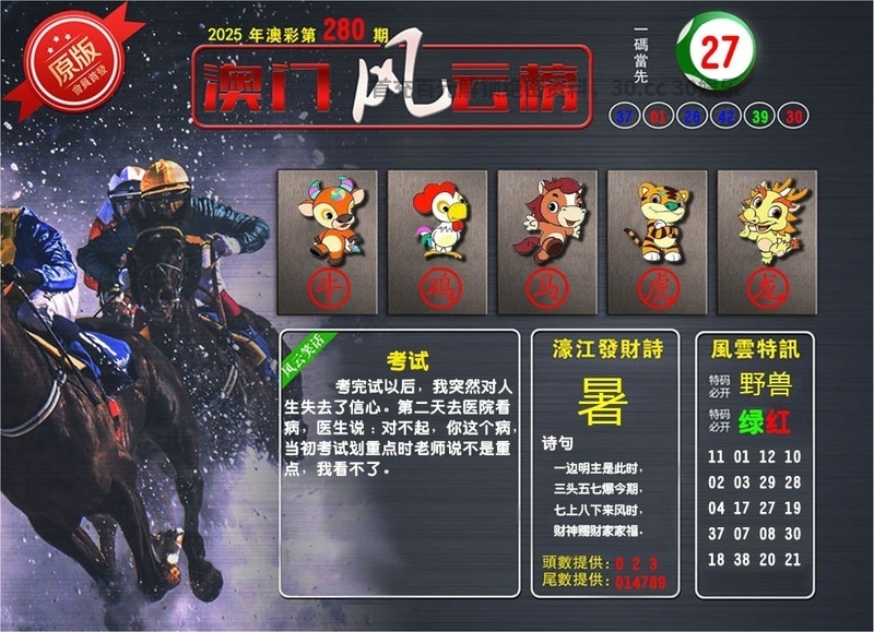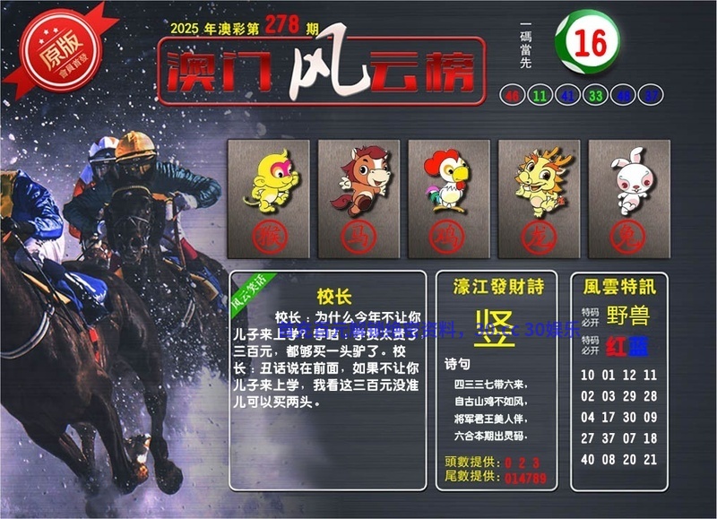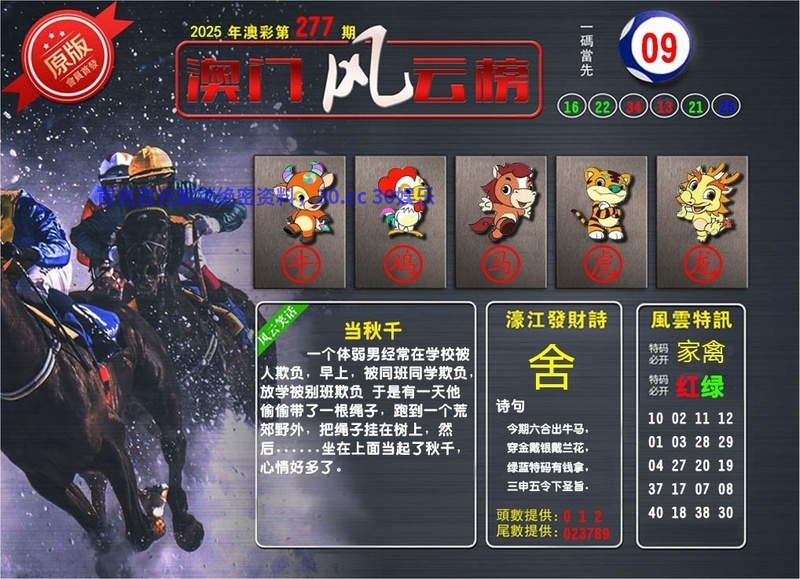 277期:六肖中特〖牛兔虎马狗蛇〗开:虎16准 |